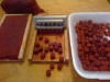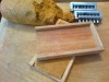 3. V prípade, že sme toto všetko zvládli, naplníme drevené formy cestou, ktoré doskou utlačime tak, aby neprečnievalo cez okraje formy. Následne lisujeme pelety podľa návodu uvedeného na peletovacom prípravku. Vylisované peletý odkladáme na sklenený alebo umelohmotný tanier tak, aby sa vzáromne nedotýkali.